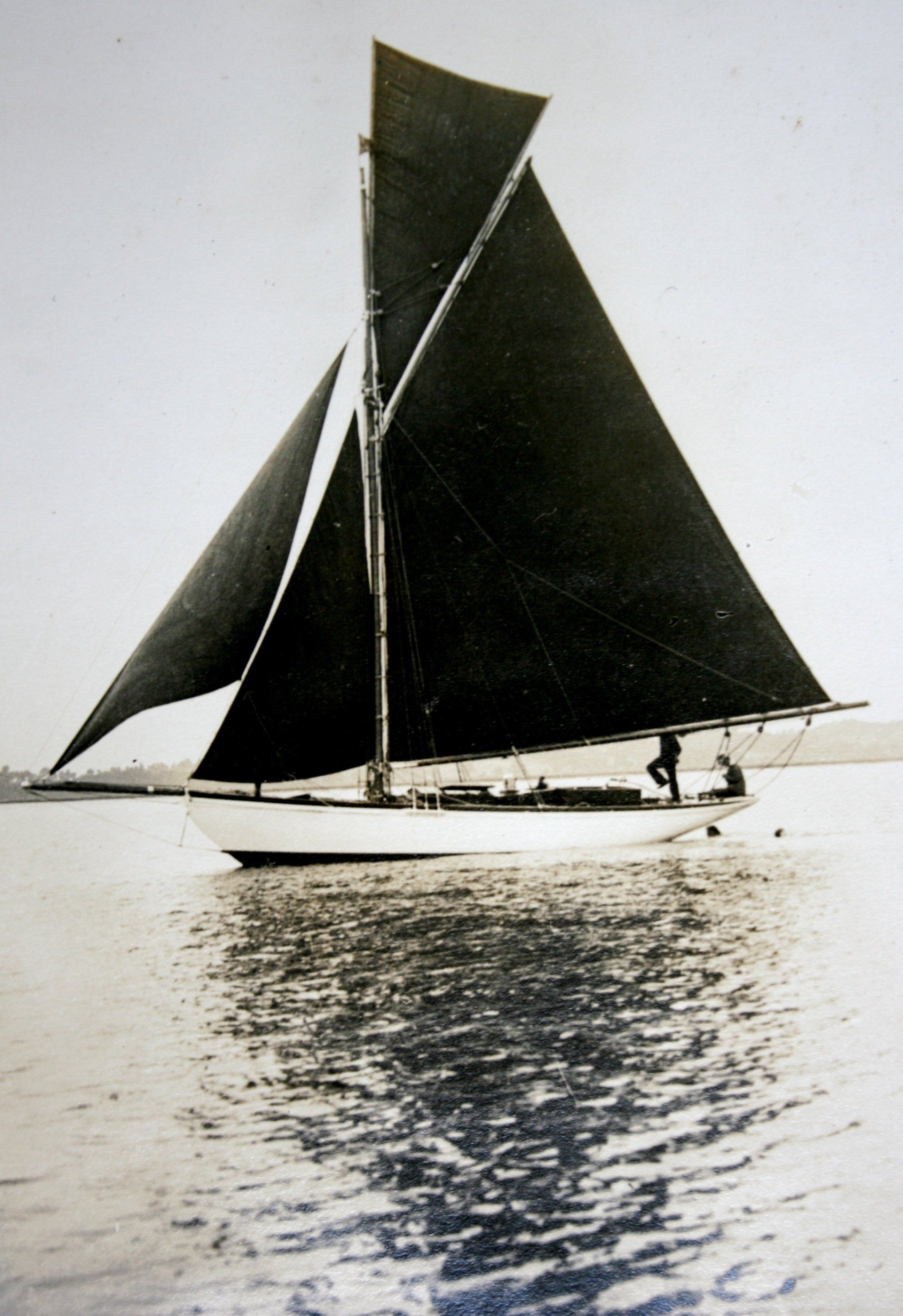 Witch was a 36 foot gaff cutter, designed and built by Charles Sibbick in 1902, she was nearing the end of a long restoration when sadly destroyed in a fire in Cowes in 2016.